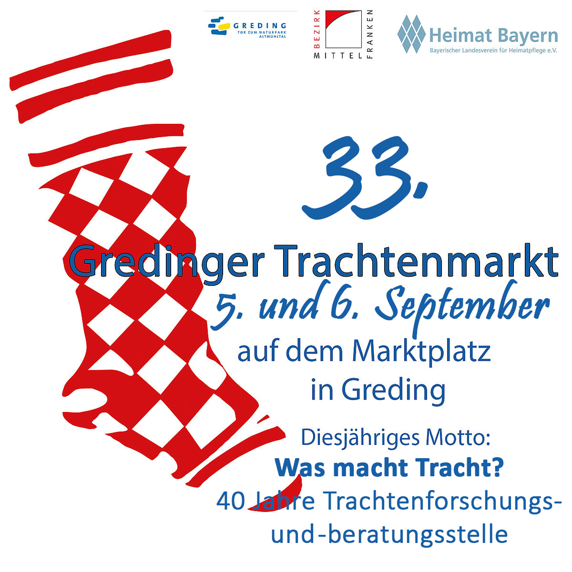 Unser Gredinger Trachtenmarkt hat sich in den vergangenen Jahren zu einer weit über die Grenzen Bayerns hinaus beliebten und bekannten Veranstaltung entwickelt. Er ist mit seinem vielfältigen Angebot in der attraktiven historischen Altstadt von Greding zu einem Muss für die gesamte "Trachtenszene" aus nah und fern geworden.